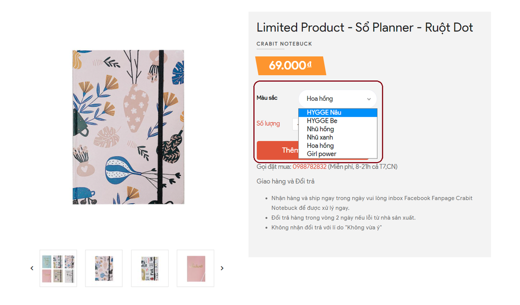 - Ấn vào sản phẩm để xem thông tin. Tại đây, quý khách chọn phân loại sản phẩm