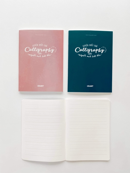 - Bên cạnh Sách Luyện viết Calligraphy dành cho người mới bắt đầu, Crabit Notebuck cũng phát hành Vở tập viết chữ Calligraphy với dòng kẻ chuyên dụng loại 80 trang (bìa xanh dương) và 120 trang (bìa hồng)