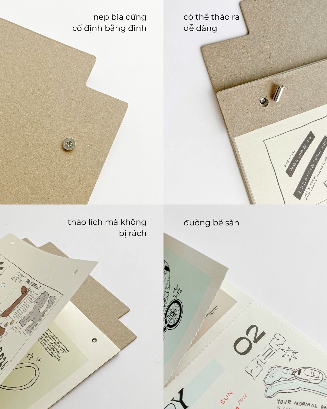 - Mỗi tờ lịch có đường bế, dễ dàng xé ra làm poster decor