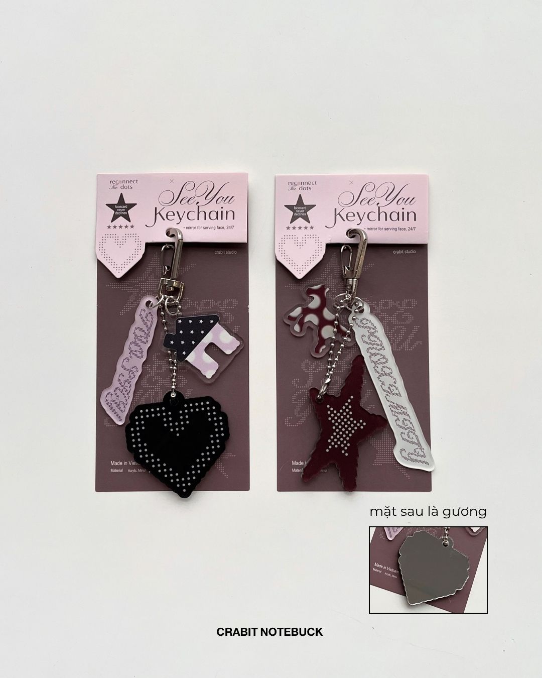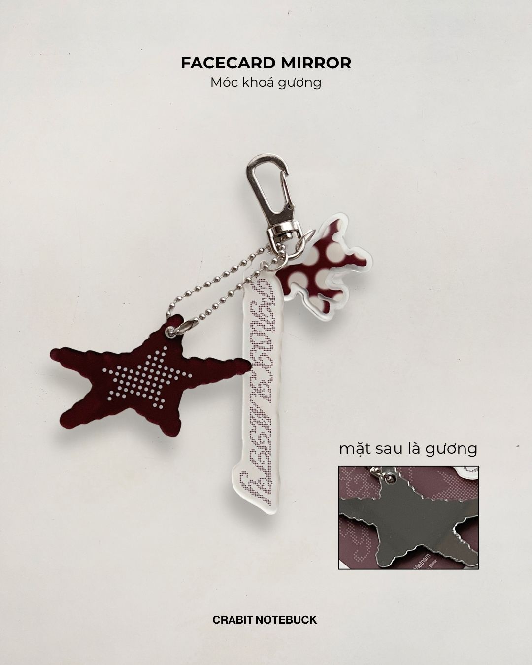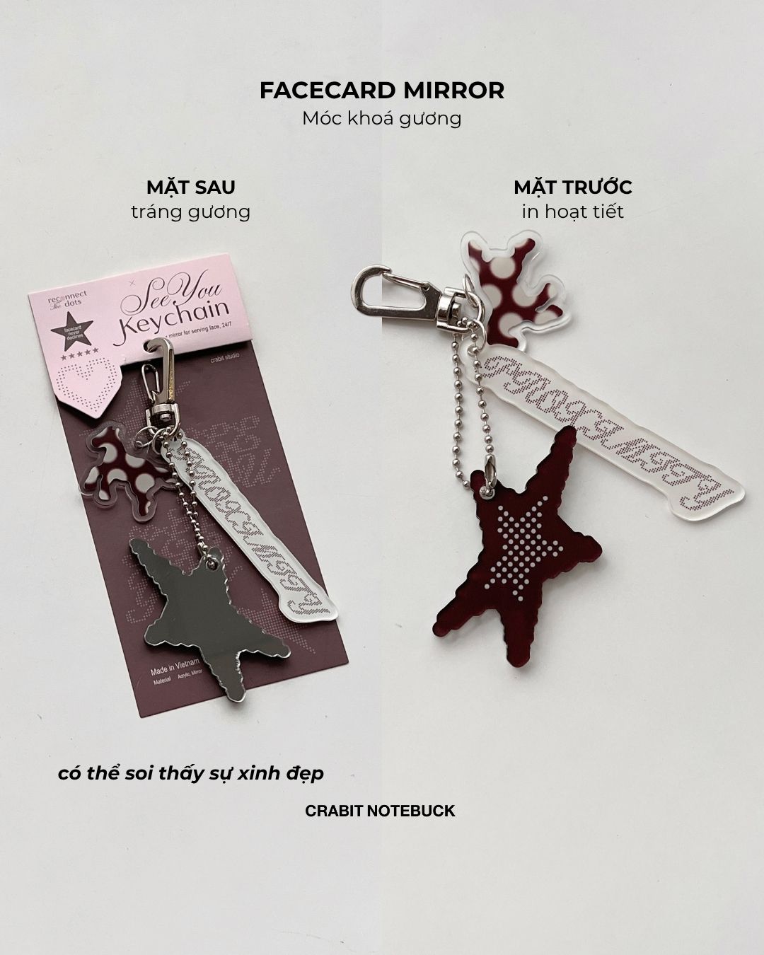 + Facecard mirror: Móc khoá 2 lớp, 1 lớp acrylic, 1 lớp tráng gương cùng bạn check nhan sắc mọi lúc mọi nơi