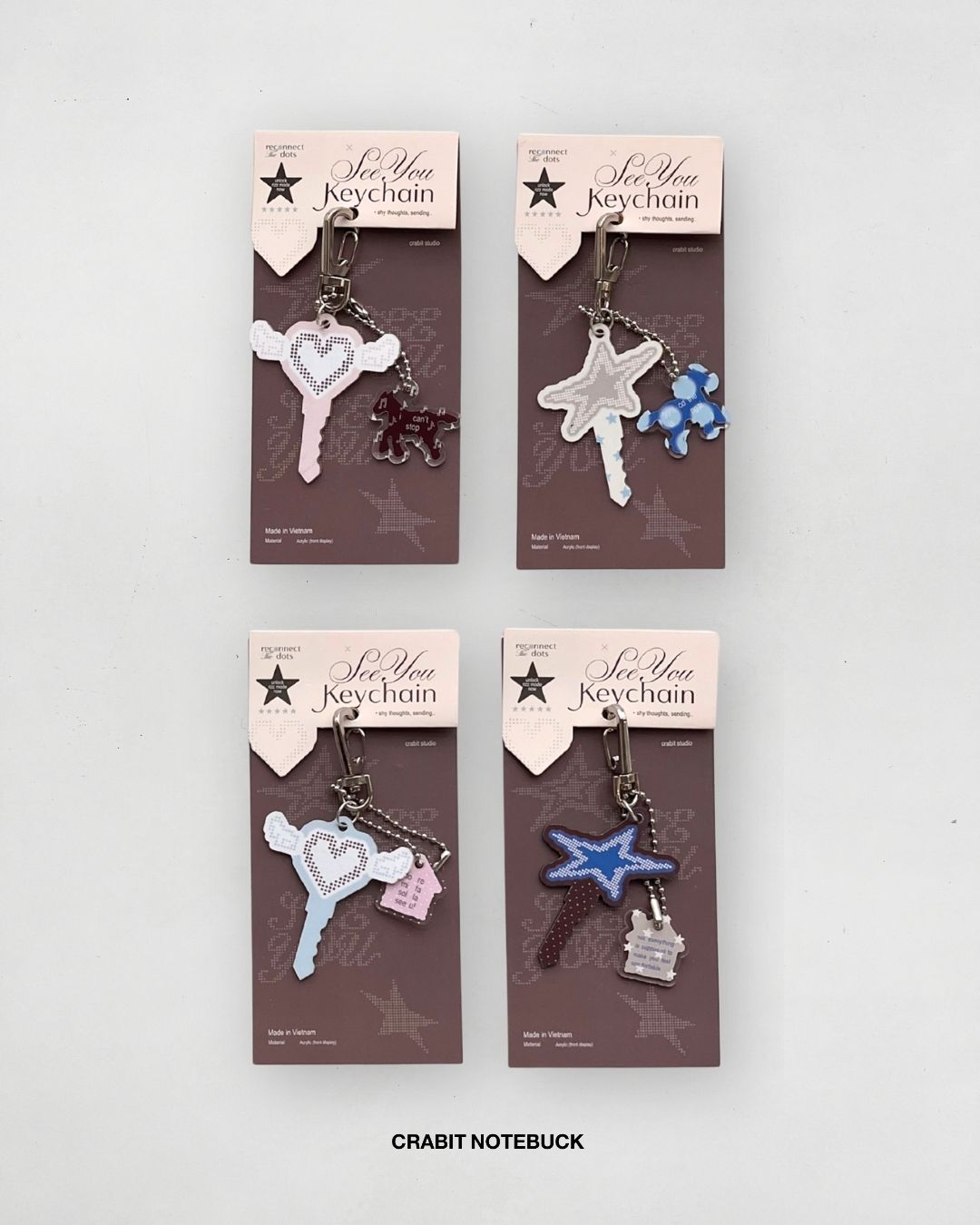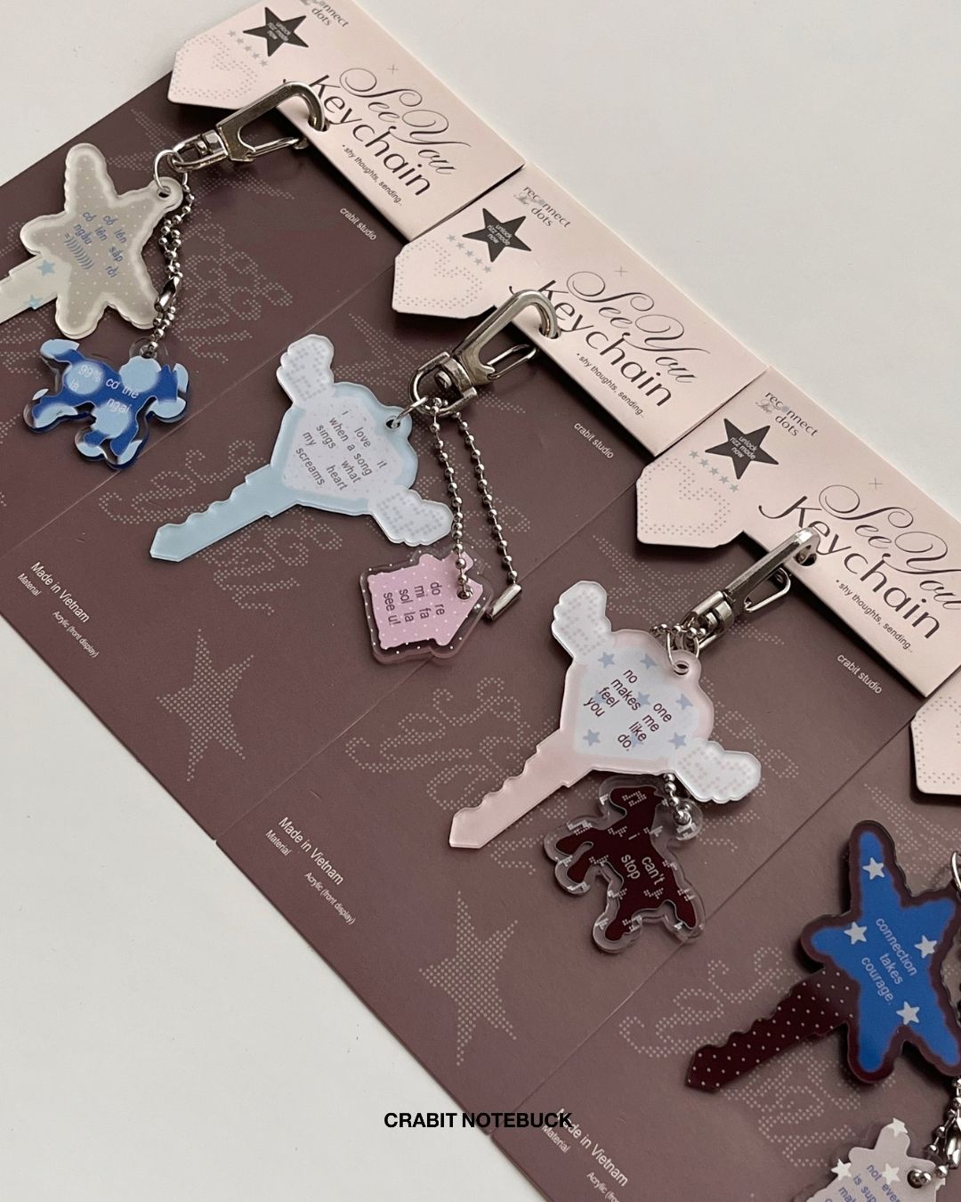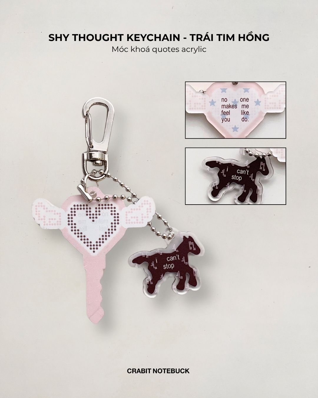 + Shy thought: móc khoá 1 lớp acrylic mang những câu quotes