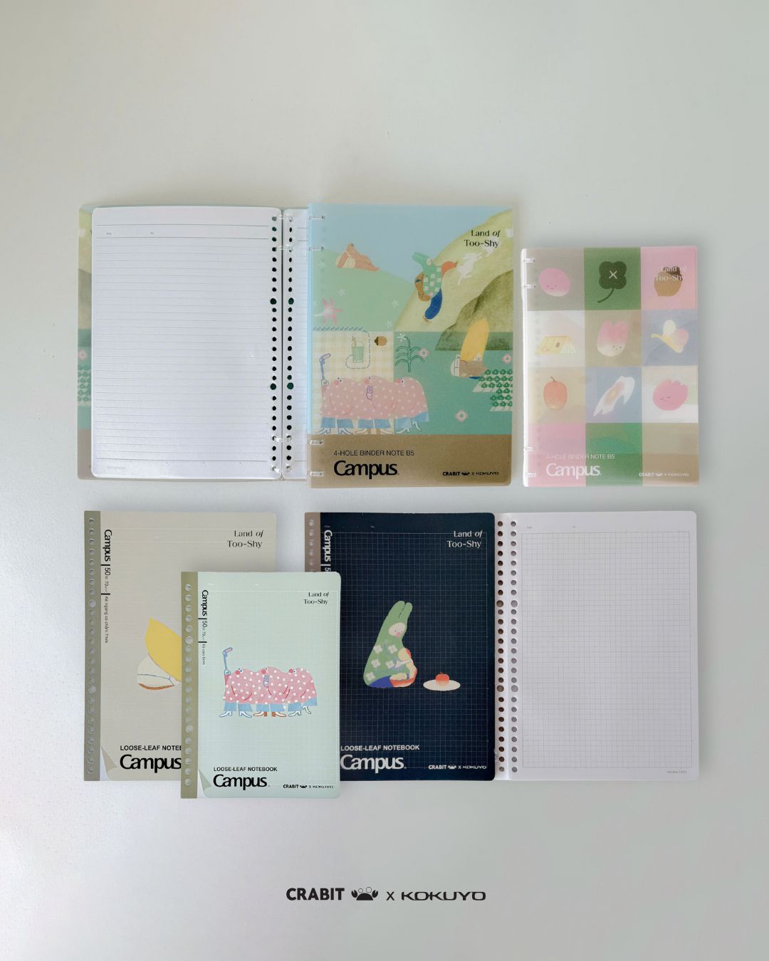 Sổ còng 4 lỗ kẻ ngang A5 80 trang Crabit x Kokuyo Land of Too-shy 2 - Too-shy Picnic