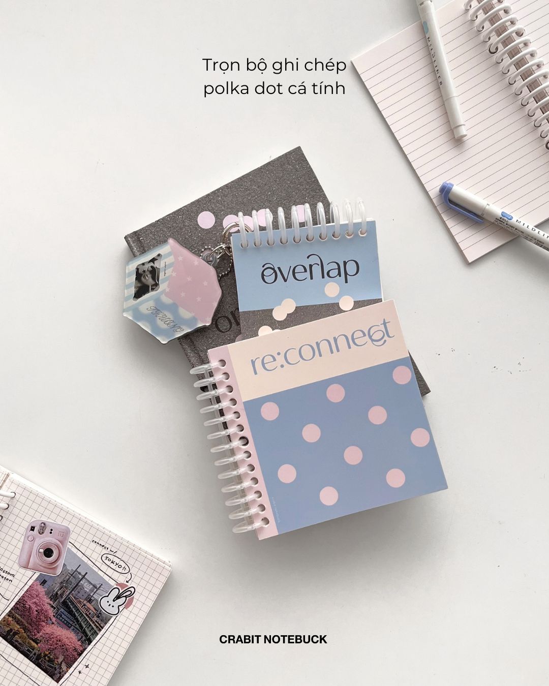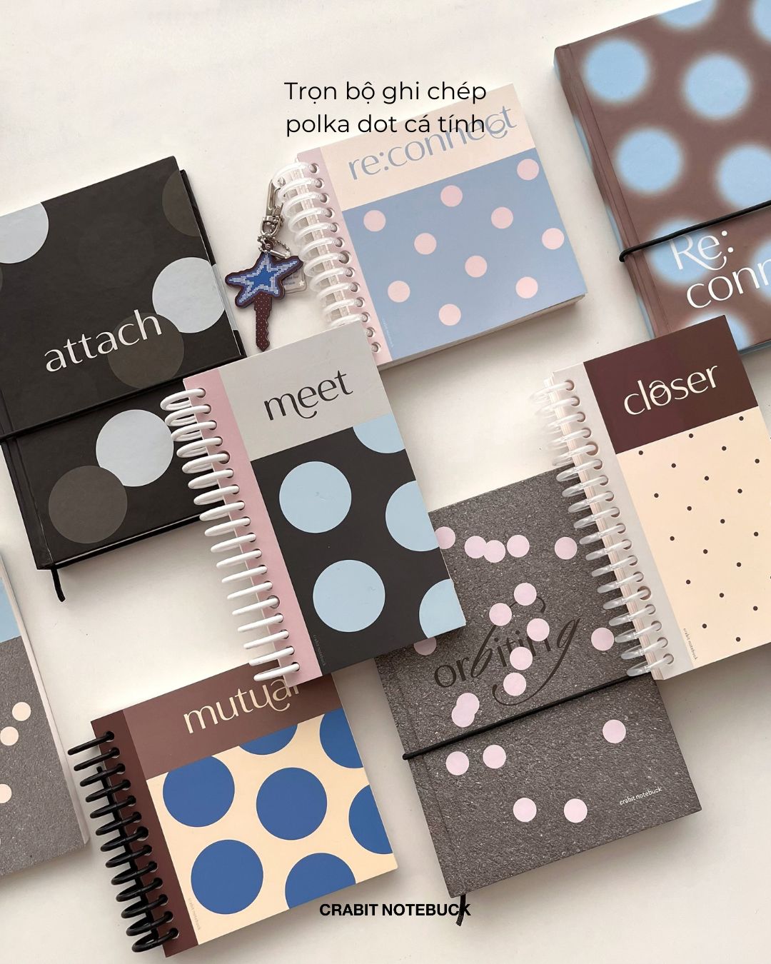- Thông qua BST, Crabit muốn truyền tải đến các bạn tạm ngắt kết nối để cùng kết nối lại với chính mình. (disconnect to reconnect), mỗi trang sổ để bạn tìm lại niềm vui trong viết lách, lưu mọi khoảnh khắc thật yêu trong bộ khung ảnh, và thể hiện tuyên ngôn phong cách với bộ móc khoá cực cá tính.