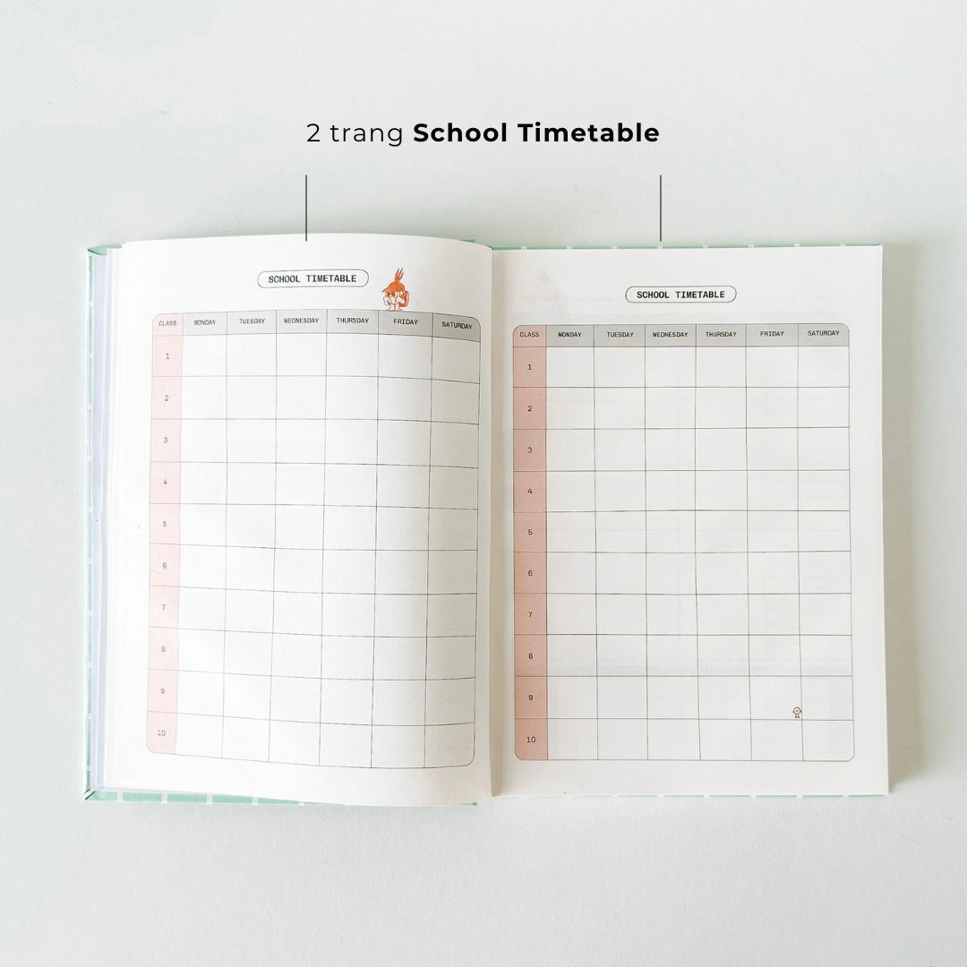 - 1 Trang After School Timetable: Layout dành cho các hoạt động ngoại khóa như tham gia CLB, các thú vui cá nhân,..