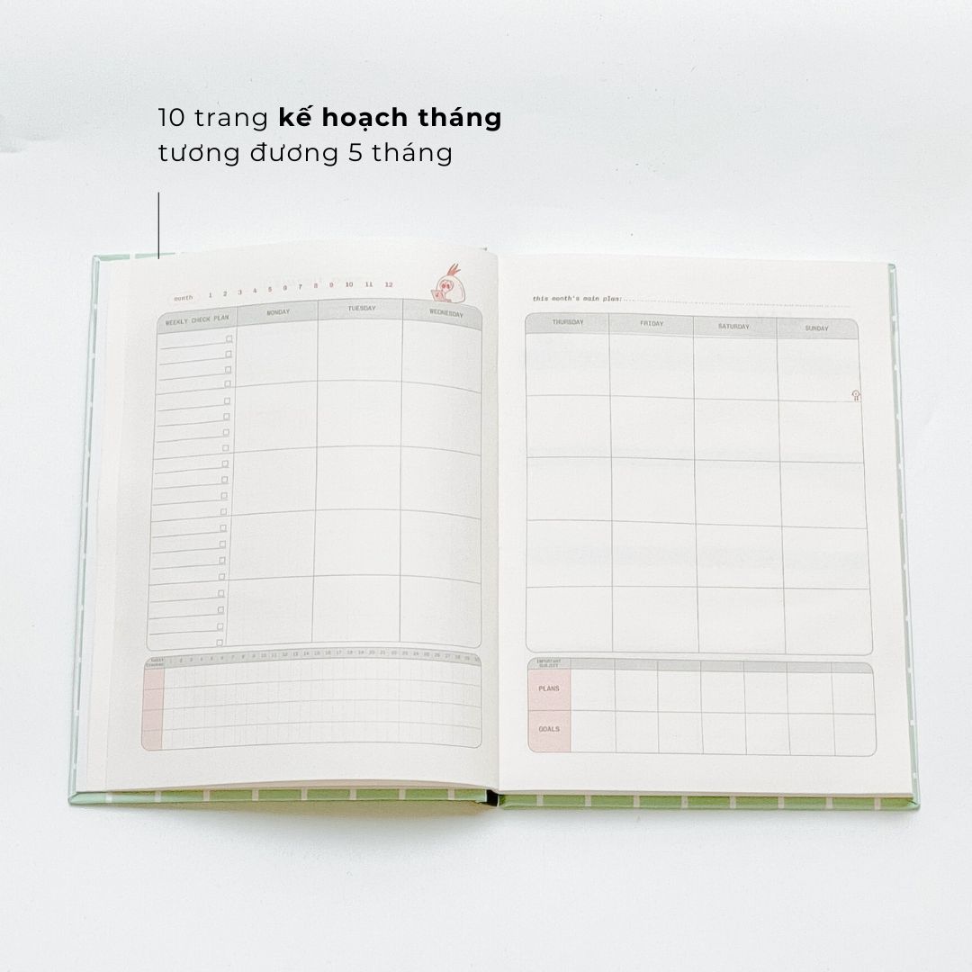 - 10 trang kế hoạch tháng: Ghi chú các mốc thời gian quan trọng như: lịch thi, lịch kiểm tra các môn trong tháng, hoạt động ngoại khóa,...